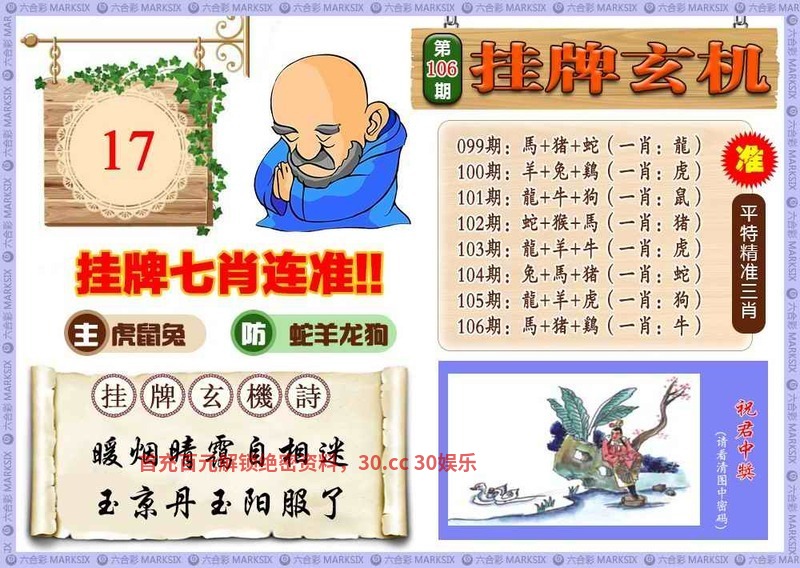 102期:⑧肖【虎鸡龙猴马蛇狗】开:鼠30准