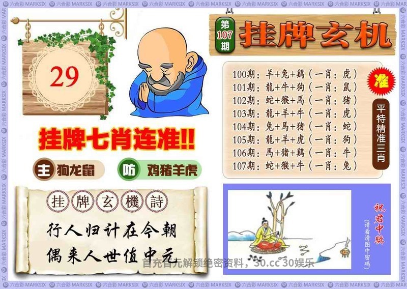 109期最老版无字天书:和合三三足养身,九字开花乃常见。龙29